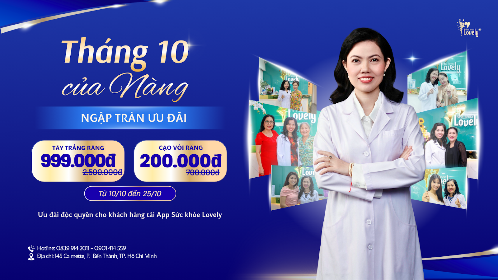 🎁 Ưu đãi tháng 10: Tẩy trắng răng chỉ 999K (giá gốc 2.500.000đ) khi đặt lịch qua App Sức khỏe Lovely, áp dụng từ 14/10 – 20/10/2025.