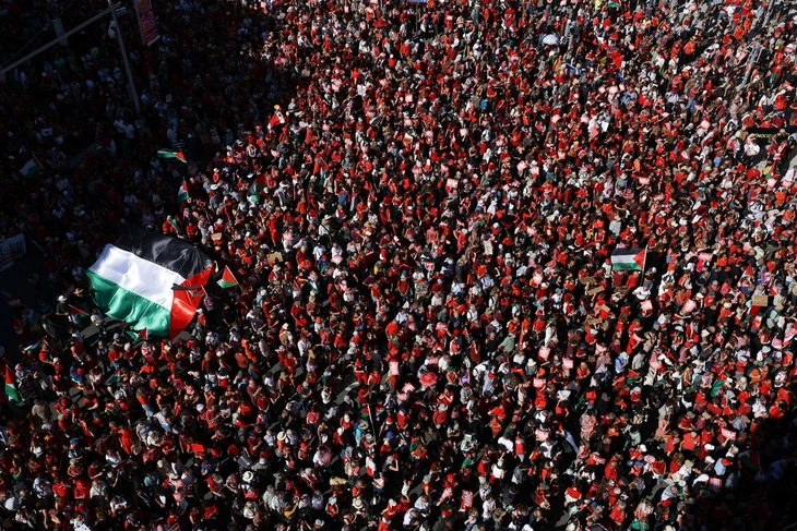 Cùng ngày, tại Brussels (Bỉ), khoảng 70.000 – 120.000 người đã tuần hành ủng hộ Palestine, kêu gọi EU có hành động mạnh mẽ hơn để bảo vệ dân thường ở Gaza. Nhiều người cầm thẻ đỏ tượng trưng cho lời kêu gọi áp đặt biện pháp trừng phạt đối với Israel.